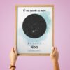 • Mapa estelar real e certificado por astrónoma, com constelações, Sol e planetas tal como estavam no teu nascimento.